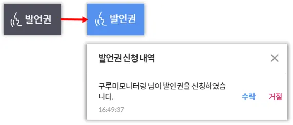 발언권 기능 - 발언을 하고 싶으실 땐 발언권을 신청해 주세요