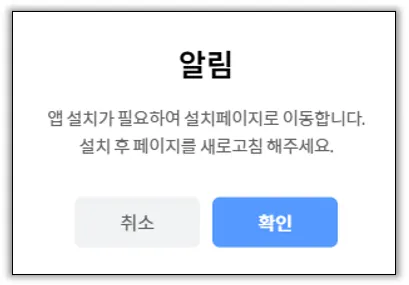 확장 프로그램 설치 페이지로 이동하라는 알림이 뜨는데, 확인 버튼을 누릅니다.