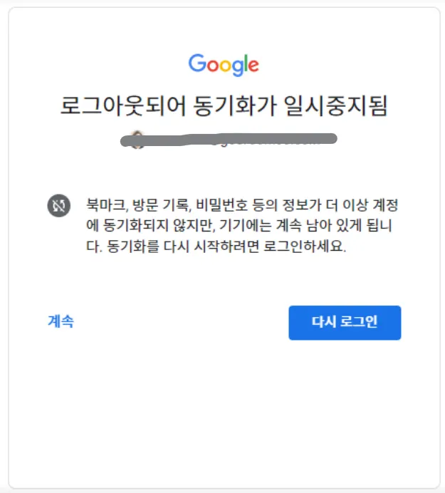 이때 크롬에 로그인되어 있지 않거나 로그아웃하였다면 아래와 같이 크롬 알림 창이 뜨게 되나, 계속 을 누르면 크롬 로그인 없이 설치가 가능합니다.