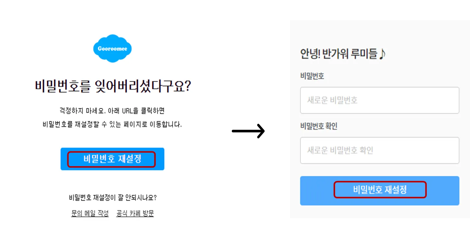 구글 혹은 네이버 메일 서비스에서 로그인 후, 받은 메일함에서 URL을 클릭하면 비밀번호 재설정 페이지로 넘어갈 수 있습니다.