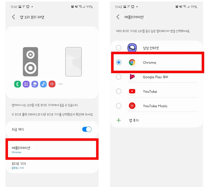 이 부분은 안드로이드 앱 소리 분리 재생으로 해결할 수 있습니다.