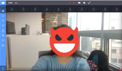 좌측 상단에 있는 구름 - 강의실 정보에서 스티커 사용을 꺼짐으로 설정해 주시고