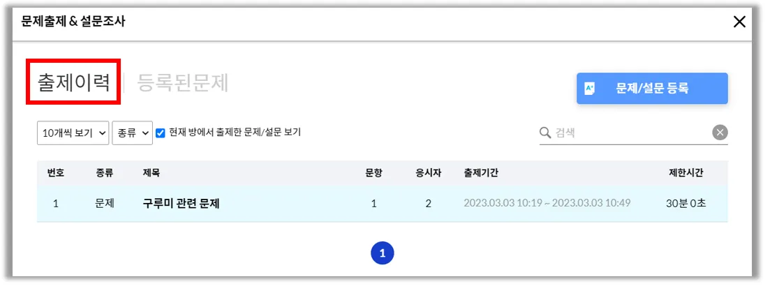 출제 이력을 클릭해 주신 후, 확인이 필요한 목록을 클릭해 주세요.