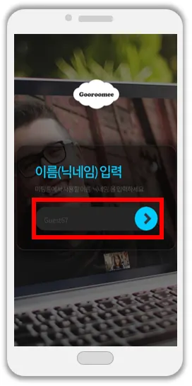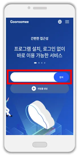 3. 홈화면 중앙에 있는 방 이름 검색 란에 '방 이름'을 입력하고 [참여] 버튼을 눌러줍니다.