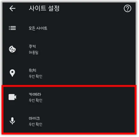 카메라와 마이크에 대한 사용 권한을 '허용 안함'으로 선택하신 경우,