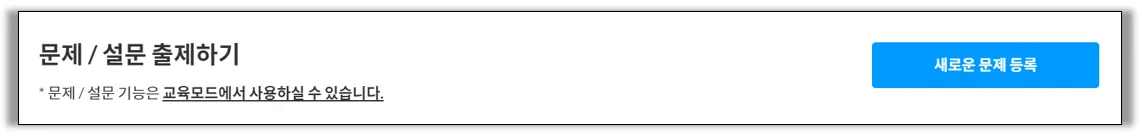 문제/설문 목록에는 문제를 미리 등록 및 확인이 가능합니다.