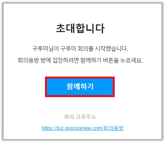 초대 메일을 받으면 함께하기 버튼을 눌러 미팅룸에 입장합니다.