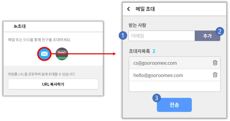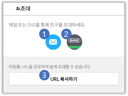 미팅룸 초대는 3가지의 방법으로 가능합니다.