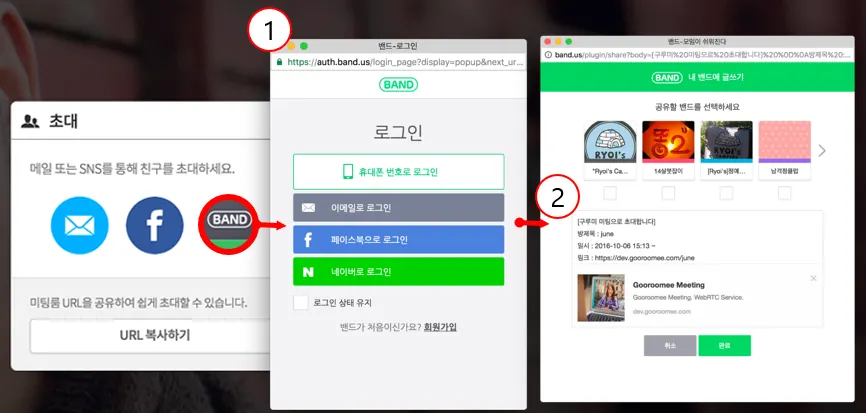 밴드에 링크를 공유하여 미팅룸을 이용해 보세요.