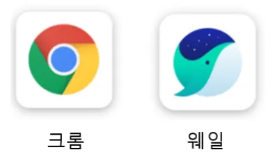 크롬 브라우저 또는 웨일 브라우저가 설치되어 있지 않으면