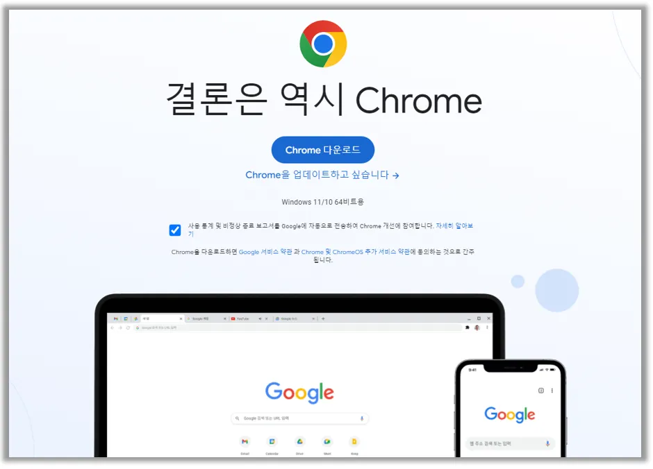 해당 화면에서 Chrome 다운로드 버튼을 클릭하여 다운로드해 주세요.