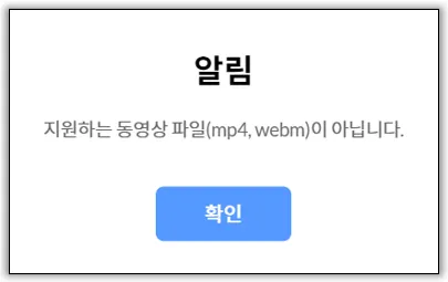 해당 알림창 은 구루미 미디어 공유에 업로드를 할 수 없는 확장자와 코덱으로 업로드를 할 시 뜨는 창입니다.