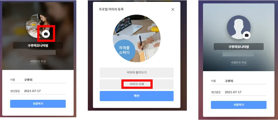 프로필 사진을 등록하셨던 곳으로 이동하시어 카메라 버튼을 클릭하신 후