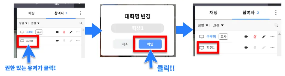 참여자분들이 입장 시 대화명 변경을 어려워 하신다면,